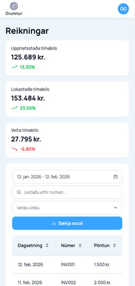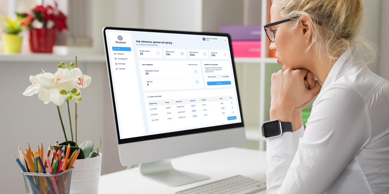Með Grunni geta fyrirtæki boðið viðskiptavinum sínum upp á notendavænan vettvang með greiðum aðgangi að reikningum, hreyfingayfirlitum, samningum og öðrum gögnum á mun hagkvæmari hátt en þegar þjónustuvefir eru smíðaðir frá grunni.