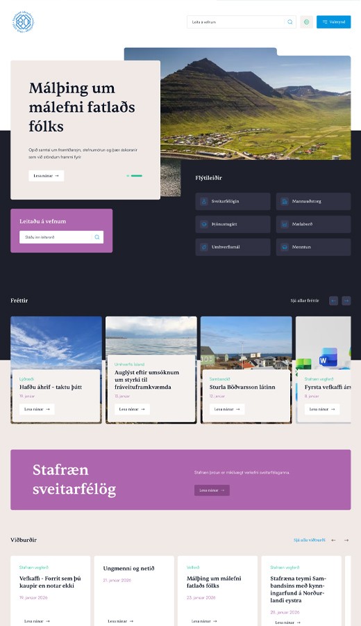 Samhliða okkar vinnu fékk vörumerki Sambandsins upplyftingu með ferskari litapallettu, nútímalegra leturvali og fallegum myndum, sem vefsíðan endurspeglar.
